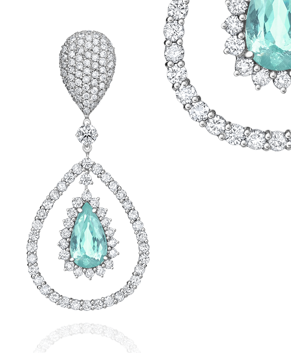 A Turmalina Paraíba é considerada uma gema de cor azul, o poder desta cor vem desde a tranquilidade do céu até os mistérios do oceano. Escolhida para representar a força do sangue nobre. Simboliza o estímulo do intelecto, da criatividade e a harmonia.
